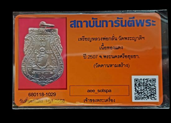 เหรียญหลวงพ่อกลั่นวัดพระญาติฯ เนื้อทองแดง บล็อกสายฝน ปี 2507 จ.พระนครศรีอยุธยา พร้อมบัตรรับรอง ออกวัดคานหามสร้าง หลวงปู่ดู่ร่วมปลุกเสก ราคาเบาๆครับ สายตรงแวะดูก่อนครับ หายากแล้วครับ