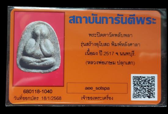 พระปิดตาวัดพลับพลา พิมพ์หลังศาลา นิยมสวย เนื้อผงเกสร รุ่นสร้างพระอุโบสถวัดพลับพลา พิธีใหญ่ เกจิอาจารย์ปลุกเสกมาก ((เช่นหลวงพ่อเกษม หลวงปู่โต๊ะ ))