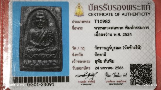 พระหลวงปู่ทวดเนื้อว่าน พิมสี่เหลี่ยมกรรมการ สร้างปี 2524 จำนวนการสร้างเพียง 2,000 องค์ สภาพสมบูรณ์ ออกบัตรรับรองพระแท้จากสมาคมพระเครื่องพระบูชาไทยเรียบร้อย รับประกันพระแท้ตามกฎครับ