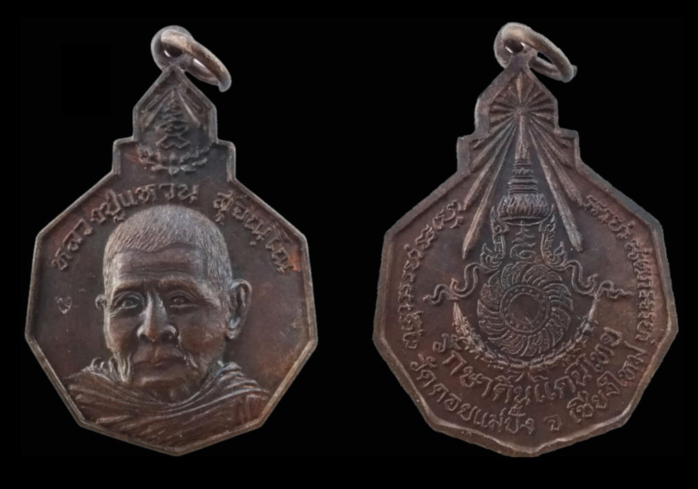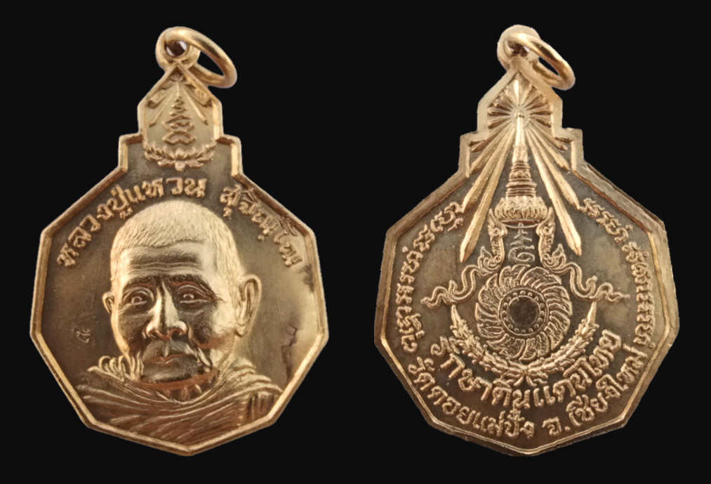 (2องค์) เหรียญเก้าเหลี่ยม รุ่นรักษาดินแดนไทย หลวงปู่แหวน วัดดอยแม่ปั๋ง เชียงใหม่ เนื้อทองแดงกะไหล่ทอง-แจกกรรมการ และเนื้อทองแดงรมดำ ตอก1โค้ด ปี2520 กองทัพบกจัดสร้าง หลวงปู่โต๊ะร่วมเสก สภาพสวย! |