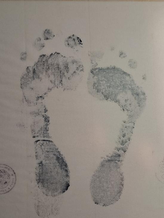 ผ้ายันต์รอยเท้า หลวงพ่อทรง วัดศาลาดิน จ.อ่างทองใส่กรอบไม้ พร้อมบูชา