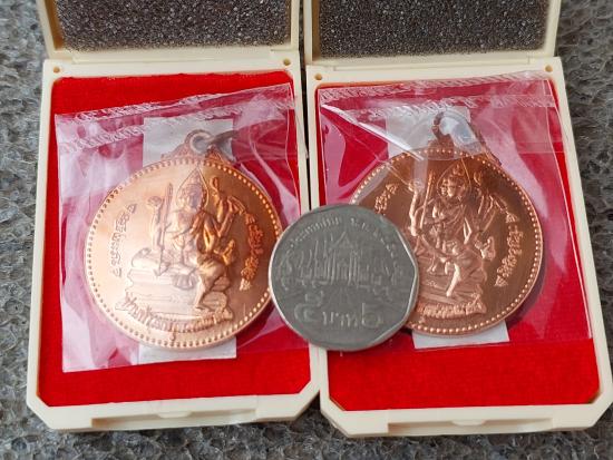 เหรียญจักรเพชรท่านท้าวมหาพรหมธาดา รุ่น เศรษฐี จักรเพชร รุ่น 5 วัดดอน พิมพ์ใหญ่ เนื้อทองแดง 2 เหรียญ |