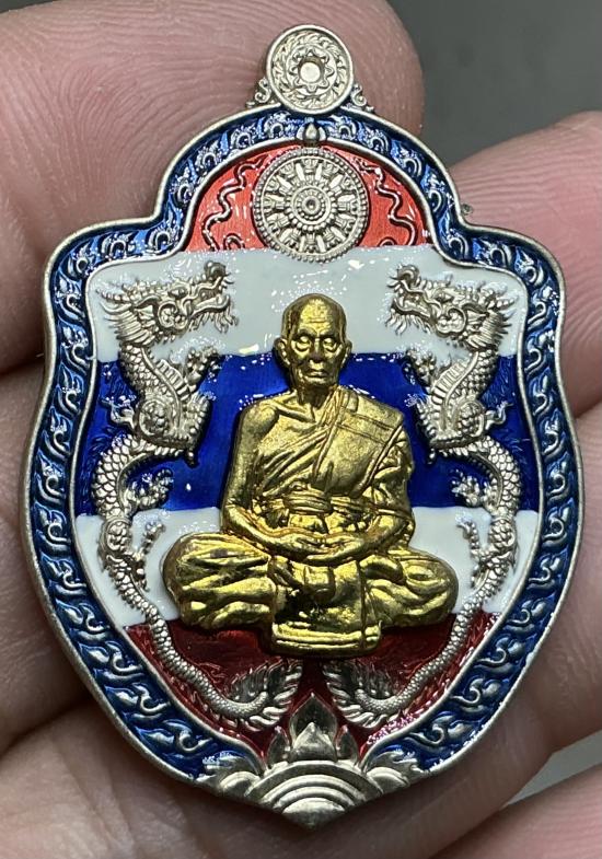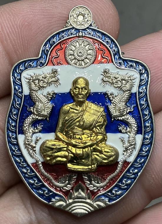 แดงที่ 120 บาท เหรียญ หลวงพ่อพัฒน์ รุ่น มังกรปากน้ำโพ เจ้าขุมทรัพย์ ปี 63 เนื้อ อัลปาก้าลงยาธงชาติ กล่องเดิม