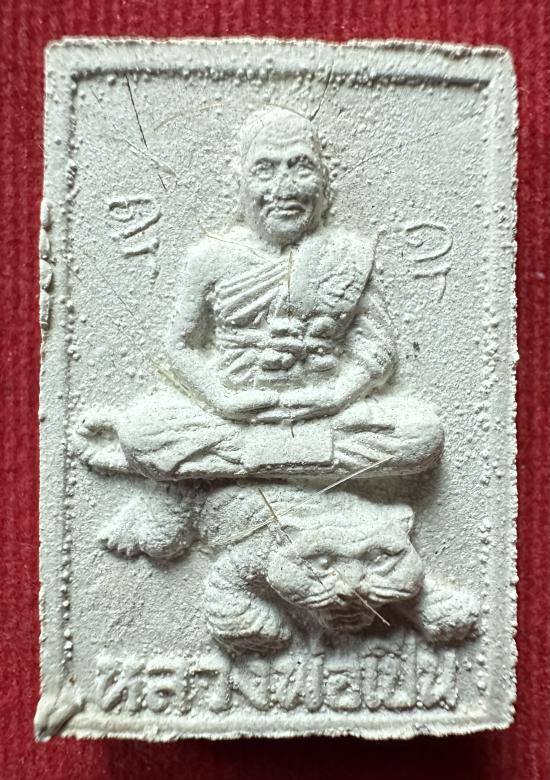 พระผงรูปเหมือนนั่งเสือ หลังเป็นยันต์แม่ทัพ (รุ่นแรก) มีเส้นเกศาด้านหน้าหลายเส้น หลวงพ่อ เปิ่น วัดบางพระ จ.นครปฐม ปี 2534 |