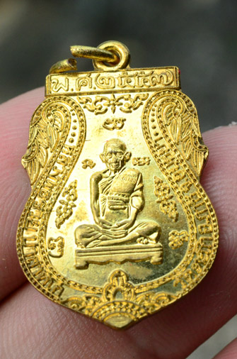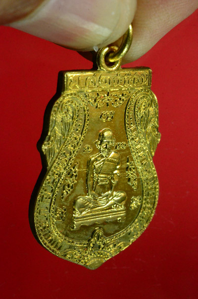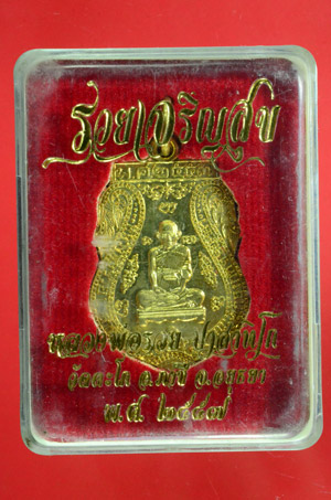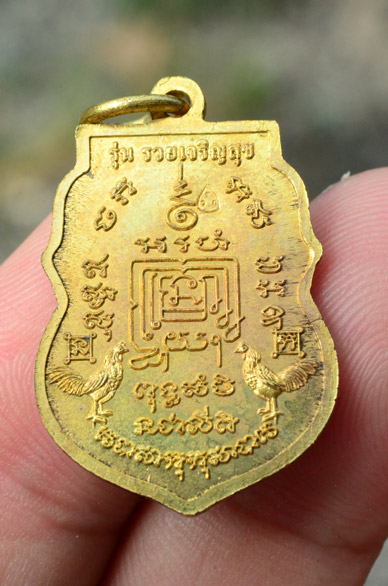 เหรียญรวยเจริญสุข หลวงพ่อรวย วัดตะโก ปี 2557 เนื้อทองแดงกะไหล่ทอง พร้อมกล่องสวยครับ