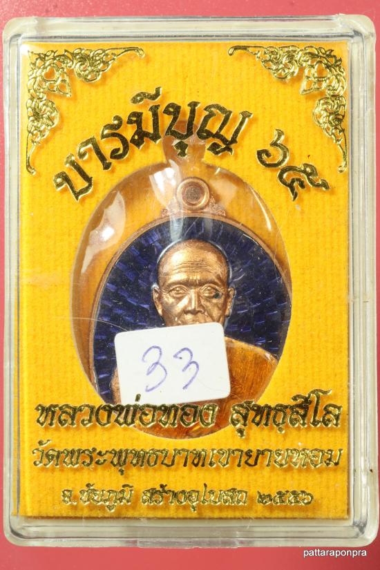 เหรียญหลวงพ่อทอง รุ่นบารมีบุญ๖๕ ปี 2556 วัดพระพุทธบาทเขายายหอม เนื้อทองแดงลงยาน้ำเงิน หมายเลข 33 เลขสวยๆ |