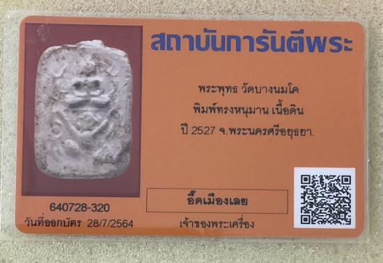หลวงพ่อปาน วัดบางนมโค พิมพ์ทรงหนุมาน เนื้อดิน ปี 2527 พร้อมบัตรการันตรี |