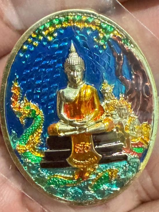 เหรียญหลวงพ่อโสธร รุ่นประวัติศาสตร์ ครบรอบ 255 ปี (วาระพิเศษ) หมายเลขสวย 98 เนื้อชุบทองลงยาน้ำเงิน ลงยาเครื่องทรง หลังลงยาพื้นแดงลงยาตราวัด ลงยาจีวร กล่องเดิม
