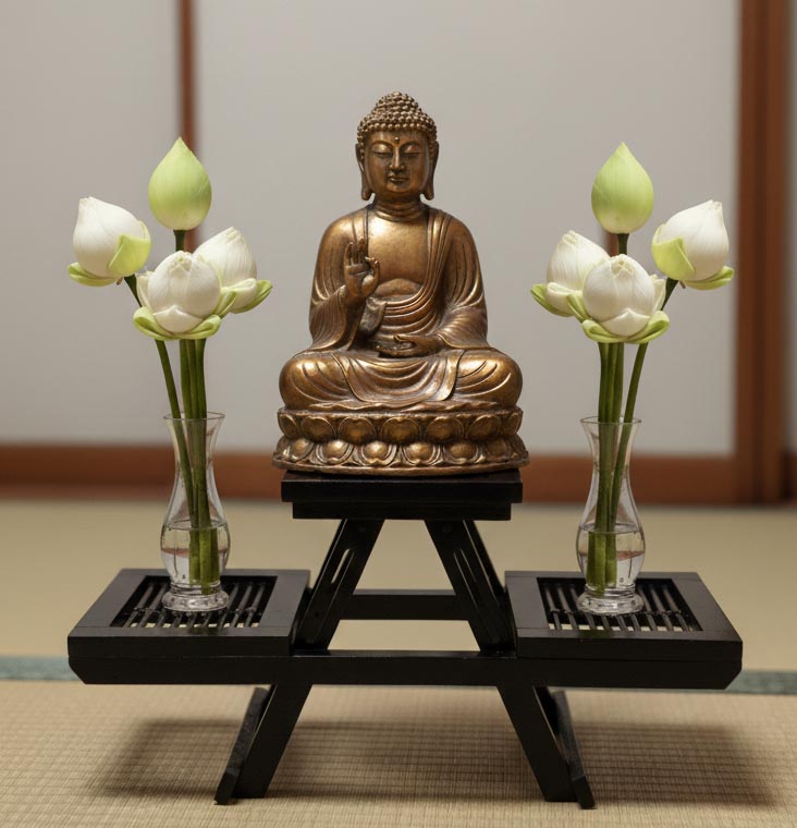 ชั้นวางบูชาไม้พับได้ 2 ชั้น สีดำ ดีเทลจากญี่ปุ่น ผลิตในญี่ปุ่นสภาพใหม่พร้อมกล่องเดิม เก่าเก็บ