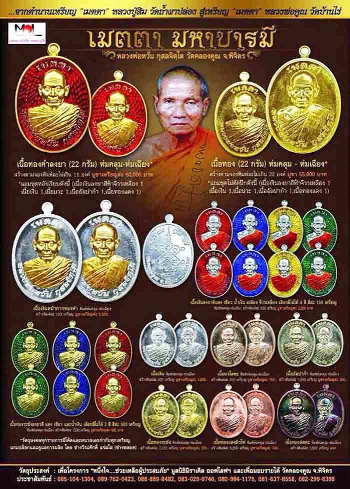 หลวงพ่อหวั่น วัดคลองคูณ รุ่นเมตตา (ห่มคลุม) เนื้อทองระฆังNO1260 + รุ่นเมตตา (ห่มเฉียง) เนื้อทองระฆัง NO2165 สวยๆ กล่องเดิม