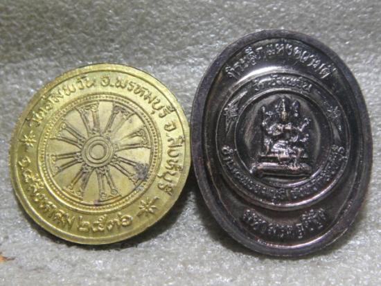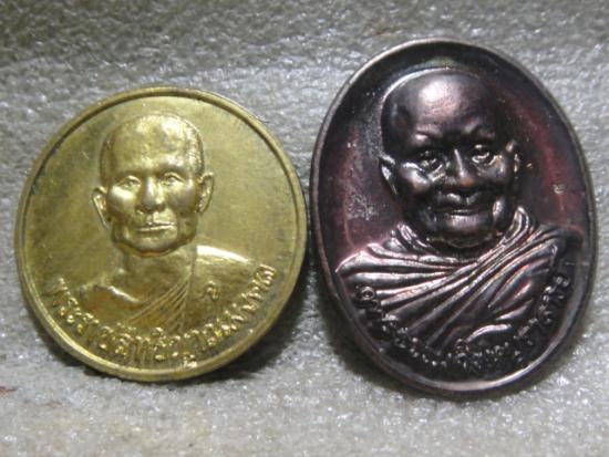 วัดใจเคาะเดียว.......100.......เหรียญหลวงพ่อจรัญ วัดอัมพวัน จ.สิงห์บุรี เนื้อทองแดง + กะไหล่ทอง รวม 2 เหรียญ