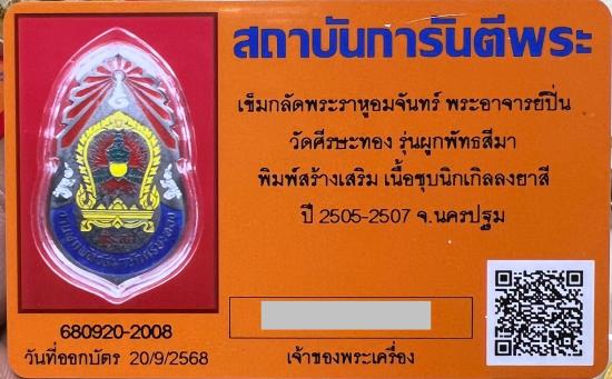 เข็มกลัดอาจารย์ปิ่น วัดศรีษะทอง จ.นครปฐม ปี2505 จารเต็มสูตร เข็มกลัดอาจารย์ปิ่น ท่านสร้างขึ้นในคราวพูกพัทธสีมาวัดศรีษะทอง เข็มกลัดอาจารย์ปิ่น มีการจัดสร้างในคราวเดียวกันกับเหรียญหลวงพ่อน้อย นาวารัตน์