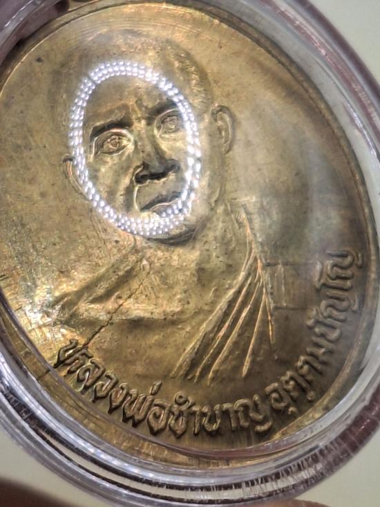 หรียญหลวงพ่อชำนาญ รุ่นถวายภัตตาหาร เนื้อทองเหลือง วัดบางกุฎีทอง ปี 2546 |