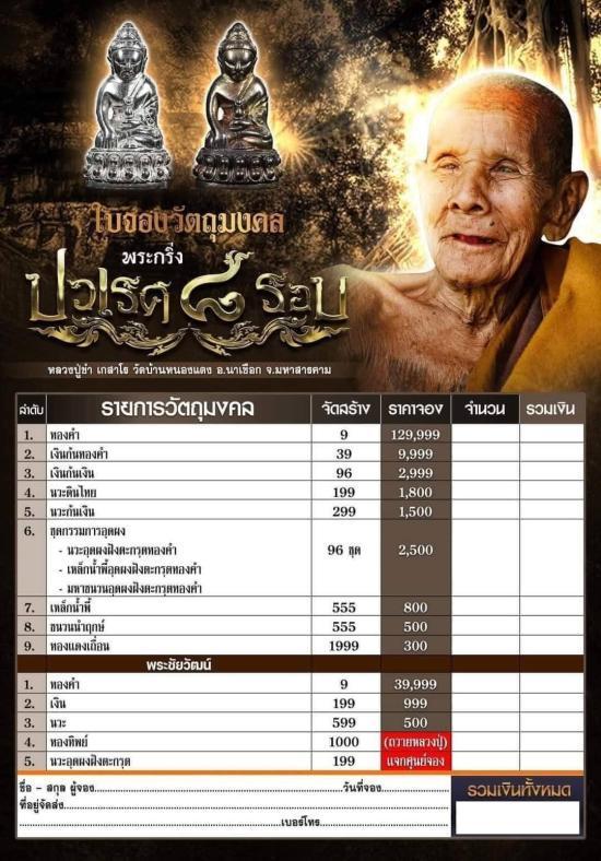 พระชัยวัฒน์ปวเรศ 8 รอบ รายการที่3 จอง500บาท เนื้อนวโลหะ ไม่แกะซีล ลุ้นเลขสวย ปี2566 |