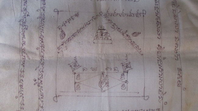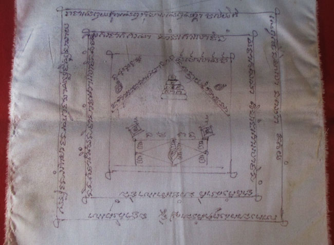 ผ้ายันต์ ไม่ทราบที่ จารยันต์ด้วยมือ ครับ