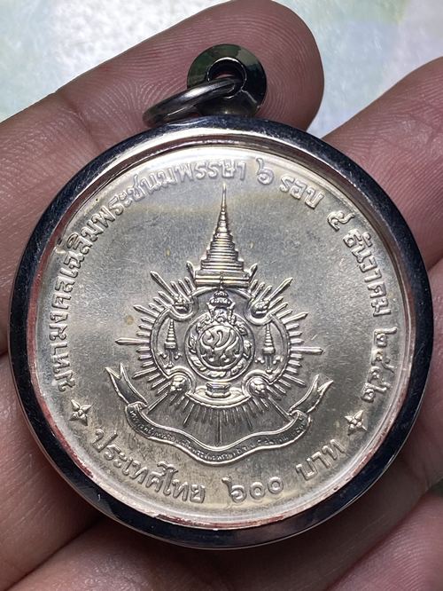 เหรียญ 600 บาท ในหลวง ร.9 พิธีมหามงคลเฉลิมพระชนมพรรษา 6 รอบ (เนื้อเงิน) พร้อมตลับพุก