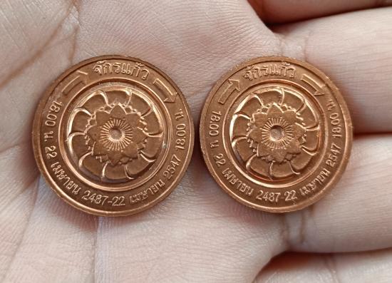 เหรียญจักรแก้ว เนื้อทองแดง หนาๆ วัดพระธรรมกาย จ.ปทุมธานี ปี 2548 มาเป็นคู่ |