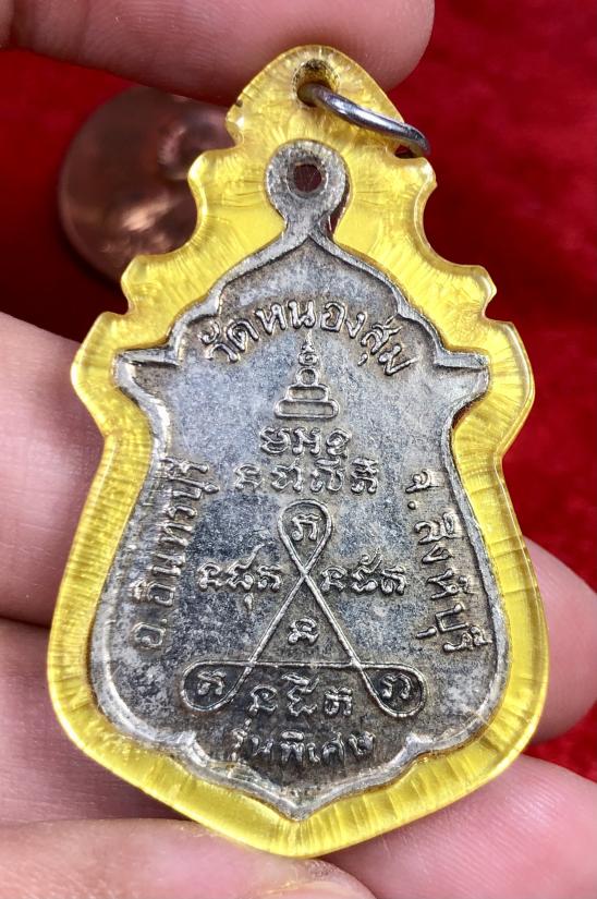 เหรียญสายสินใหม้ หลวงพ่อจวน วัดหนองสุ่ม ปี 2518 เนื้ออัลปาก้าสภาพสวยเดิมสุดๆครับ มีเลี่ยมกันน้ำครับ |
