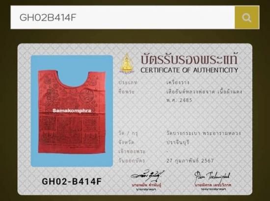 เสื้อยันต์แดงหลวงพ่อจาด วัดบางกระเบา จ.ปราจีนบุรี สภาพสวยสมบูรณ์มาก บัตรสมาคม