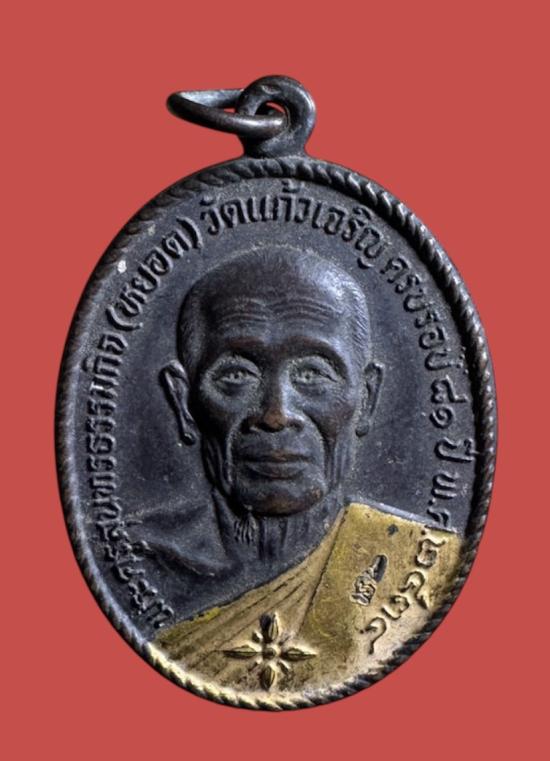 เหรียญหลวงพ่อหยอด วัดแก้วเจริญ เนื้อทองแดงปี34 |