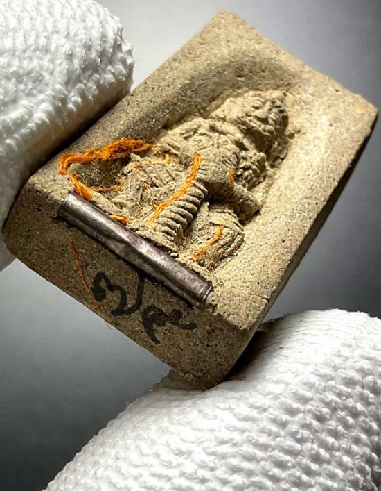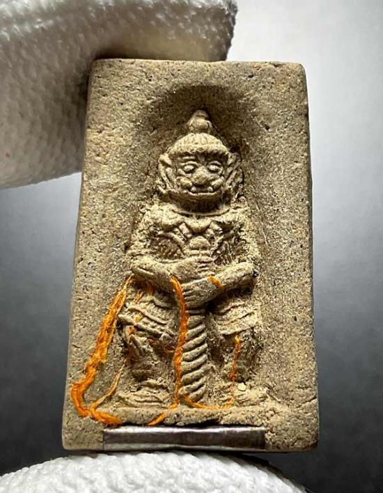 พระผงยักษ์ส้มป่อย กดพิมพ์โบราณ ครูบาจันทร์ โชติโก ตะกรุดเงิน No.75