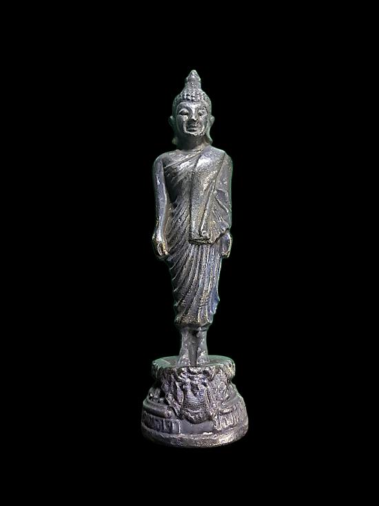 รูปหล่อ พระพุทธเจ้าเปิดโลก หลวงปู่หลิว วัดไร่แตงทอง เนื้อทองเหลืองรมดำ ปี 2539 |