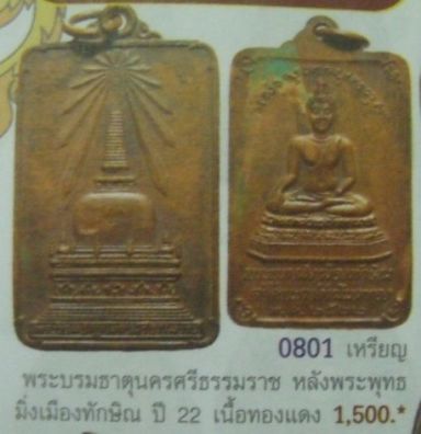 - เหรียญพระพุทธมิ่งเมืองทักษิณ เสด็จพระราชดำเนินเททอง ออกที่วัดพระบรมธาตุนครศรีธรรมราช ปี 2522 เกจิสายใต้ปลุกเสก โดยมี พล.ต.ต. ขุนพันธ์รักษ์ราชเดช เป็นเจ้าพิธี และมีพระเกจิอาจารย์ร่วมกันปลุกเสกหลายท่าน อาทิเช่น พ่อท่านคลิ้ง วัดถลุงทอง , พ่อท่านแก่น วัดทุ่งหล่อ , หลวงปู่จันทร์ วัดทุ่งเฟื้อ( สายนี้เหนียวสุดๆ เจ้าของพระกริ่งเหล็กไหลอันเลื่องชื่อ) เป็นเหรียญทรงสี่เหลี่ยมผืนผ้า เนื้อทองแดง ด้านหน้ารูปพระเจดีย์วัดบรมธาตุด้านลังพระพุทธมิ่งเมืองทักษิณ เหรียญดี พิธีดี เกจิสุดยอดของแดนใต้มาร่วมกันปลุกเสก