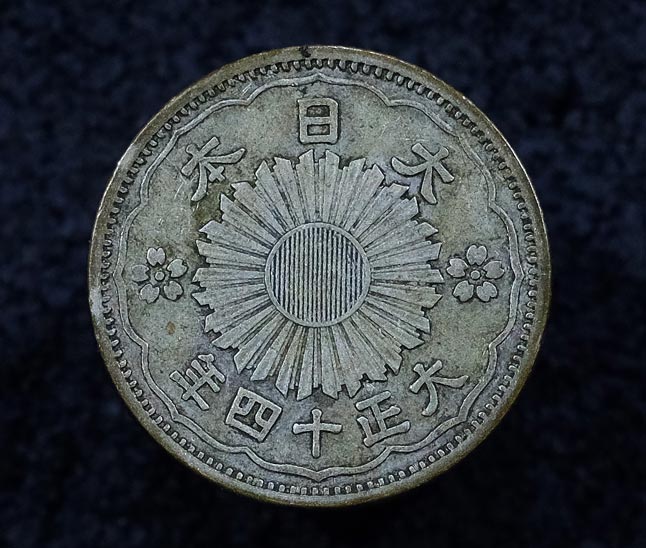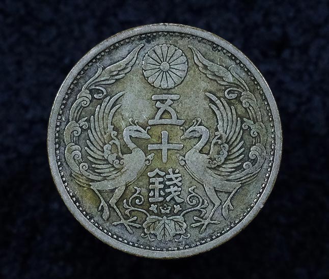 วัดใจ ... เหรียญกษาปณ์ญี่ปุ่น 50 sen ยุคไทโช(Taisho jidai - รัชสมัยสมเด็จพระจักรพรรดิไทโช ปีที่ 14) - ค.ศ.1925 เนื้อเงิน
