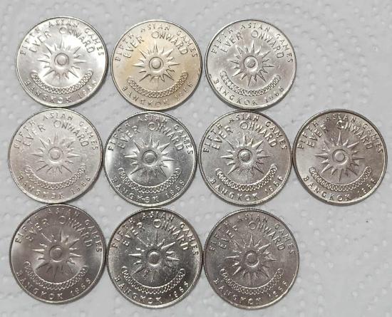 เหรียญ 1 บาท เอเชี่ยนเกมส์ ครั้งที่ 5 ในหลวงคู่ราชินี พ.ศ.2509 ในสมัยรัชกาลที่ 9 สภาพสวย จำนวน 10 เหรียญ ครับ
