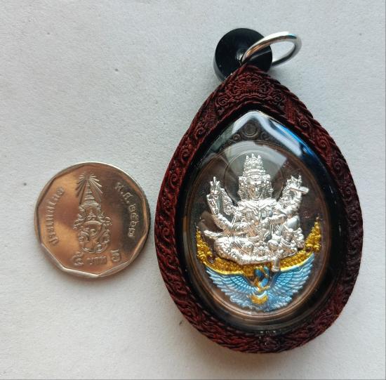 วัดใจเคาะเดียวแดงจ้า เหรียญพระพรหมทรงห่าน รุ่นพรหมประทานพร หลวงปู่อิ่ม วัดทุ่งนาใหม่ เนื้อนวะปั้ม2หน้า ด้านหน้าหน้ากากชุบทอง หลังหน้ากากชุบเงิน เพ้นท์ห่าน หมายเลข1 เลี่ยมกรอบไม้ เคาะเดียวแดงจ้า
