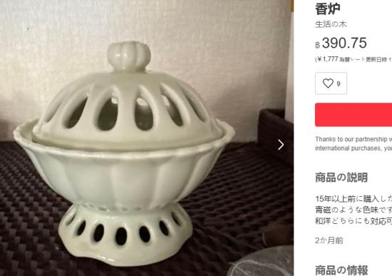 ***วัดใจ***แจกันเก่าเก็บเนื้อเซรามิกลายน้ำทอง งานของญี่ปุ่น สูง 6 นิ้ว กับที่จุดกำยาน เซรามิก