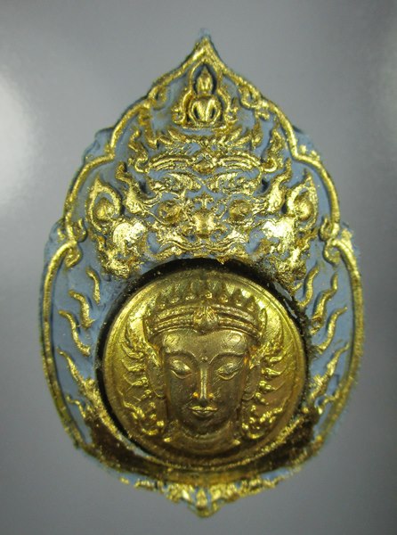 พระปัญจมุขคเนศ (พระพิฆเนศ ปาง5เศียร 10กร) หลังพระราหู สุริยะเทพ รุ่นไตรภูมิ ปี59/ อ.สุรินทร์ ศรีสังข์งาม /เนื้อผงฟ้า หน้ากากโลหะ หน้าหลัง No.7