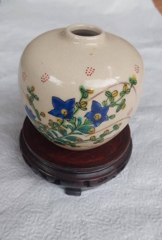 ***วัดใจ***แจกันเซรามิกญี่ปุ่น วินเทจของสะสม สูงรวมฐาน 5.5 นิ้ว เส้นผ่านศูนย์กลาง 4 นิ้ว