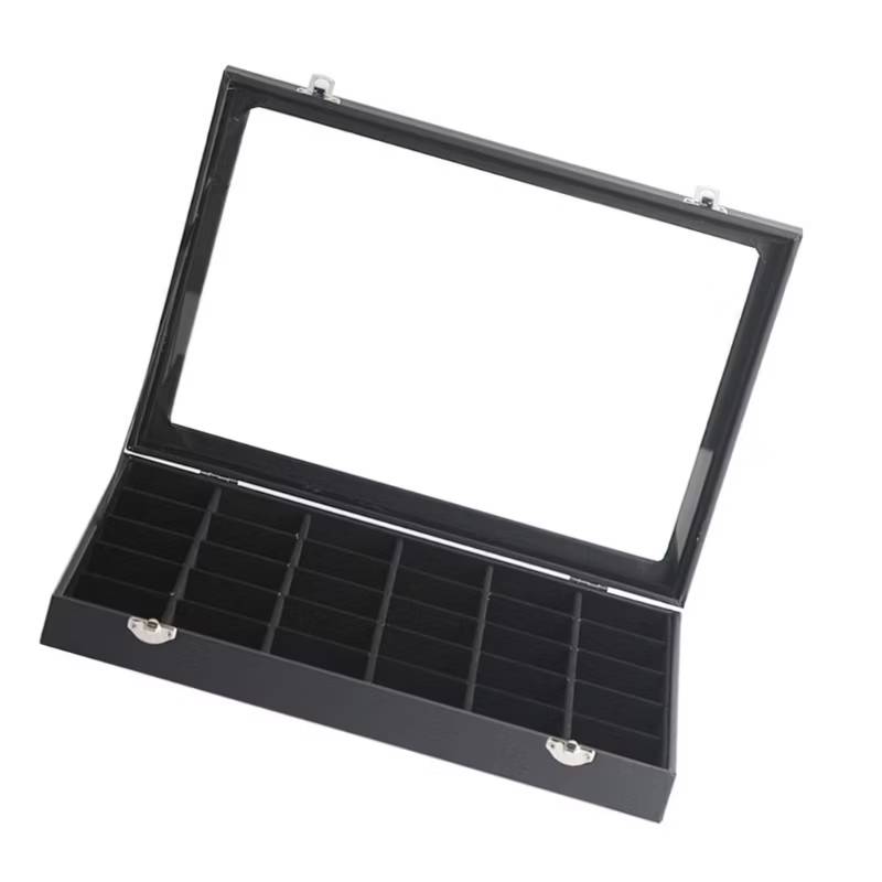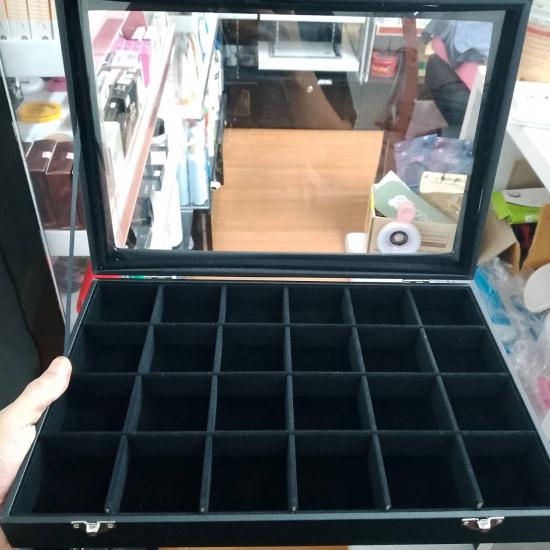 กล่อง ใส่พระเครื่อง รองกำมะหยี่ดำ 24 ช่อง ขนาด 9*13 นิ้ว (ขนาดมาตรฐาน) ใหม่