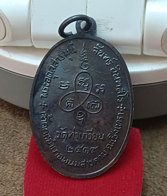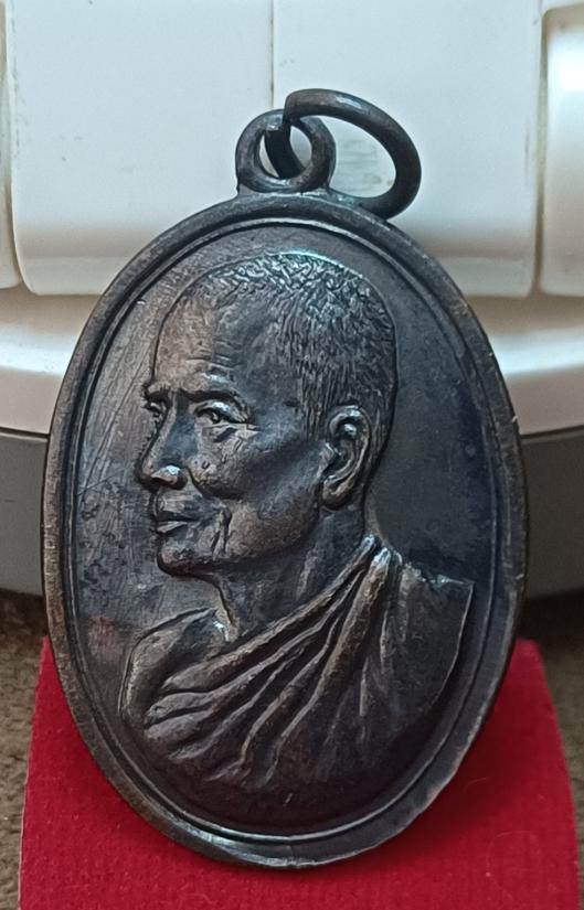 เหรียญรูปไข่หันข้าง หลวงปู่จันทร์ #วัดท่าเกวียน ปี14 อ.พนมสารคาม จ.ฉะเชิงเทรา ทองแดงรมดำ สวยเดิม