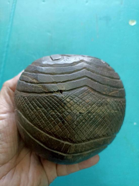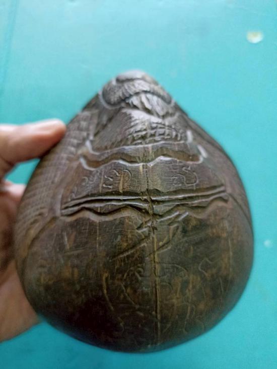กะลาตาเดียว แกะสลักรูปนางกวัก ลงอักขระตามสายวิชา แก้ดวงตกด้านการเงิน แก้เคล็ดเสริมโชคลาภ ของเก่าเก็บมานาน