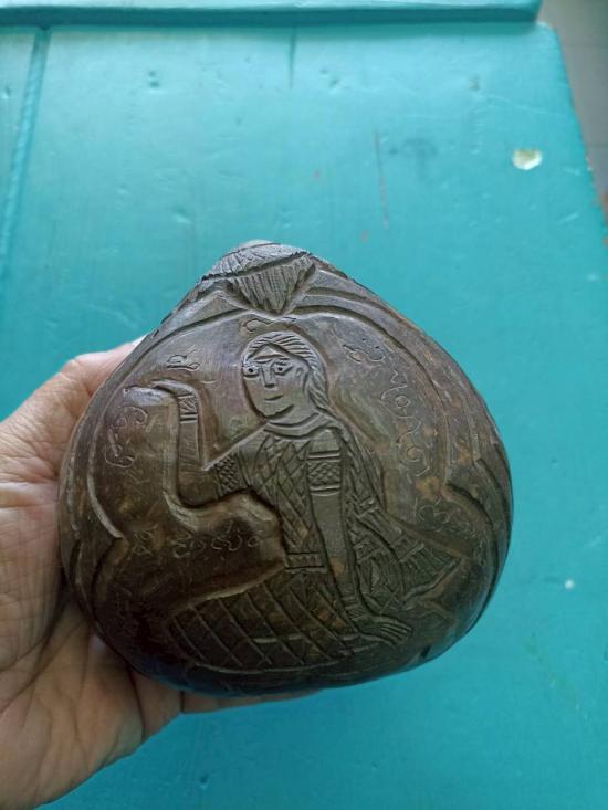 กะลาตาเดียว แกะสลักรูปนางกวัก ลงอักขระตามสายวิชา กะลาแกะ แก้ดวงตกด้านการเงิน แก้เคล็ดเสริมโชคลาภ