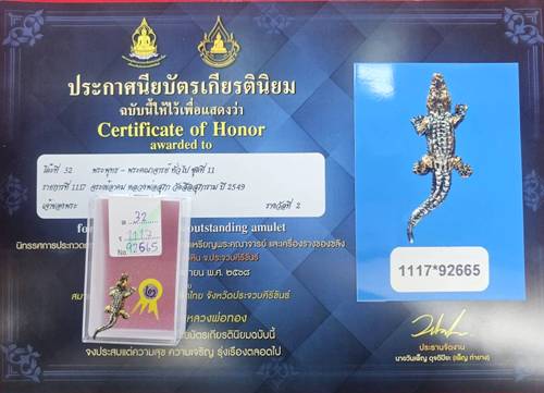 จระเข้อาคม หลวงปู่สุภา วัดสีลสุภาราม เนื้อสามกษัตริย์อุดผง ปี2549 ติดรางวัลที่2