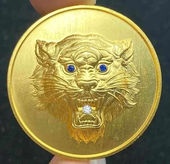 400-เคาะเดียว เหรียญกลมหัวเสือ รุ่นเหนือเมฆ หลวงพ่อประสูติ วัดในเตา มาดามเดียร์สร้างมวลสาร100ล้าน พระอาจารย์ต้อม วัดท่าสะแบง หลวงปู่ศิลา เสกอธิฐานจิต เนื้อทองแดงชุบทอง ตาฝังพลอยน้ำเงิน คาบแก้ว เลข๘๕ |