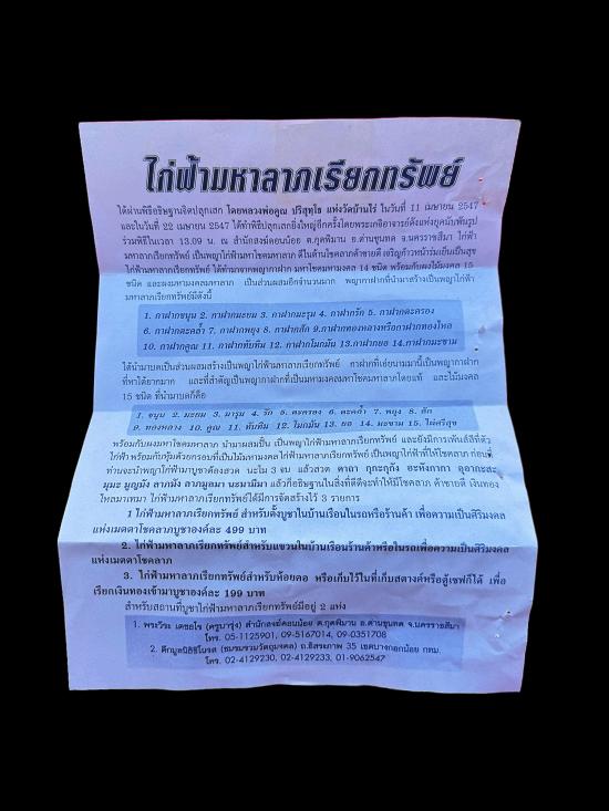 !!!!วัดใจ 9 บาท!!!!ไก่ฟ้ามหาลาภเรียกทรัพย์ หลวงพ่อคูณ วัดบ้านไร่ 2547......A691 |