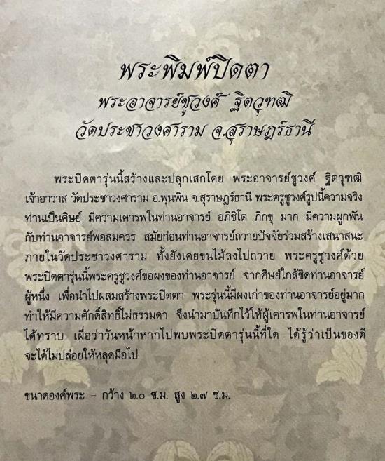 พระปิดตาพระครูชูวงศ์ วัดประชาวงศาราม จ.สุราษฎร์ธานี ผสมผงหลวงพ่อชาญณรงค์