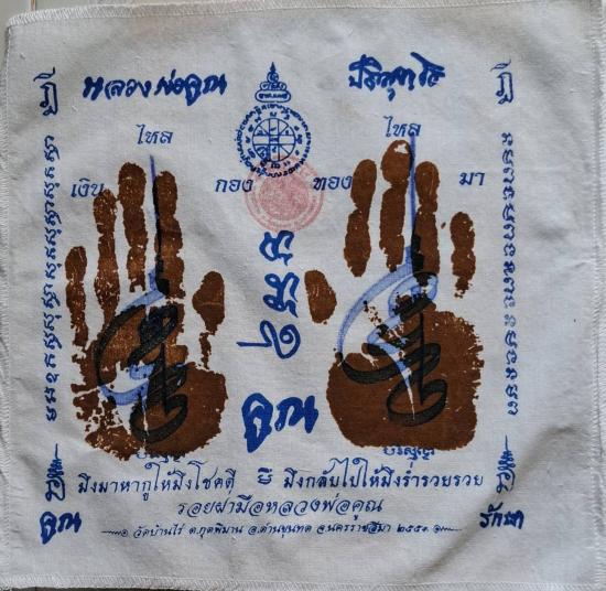 ผ้ายันต์ รอยมือ ( พร้อมรอยจารหลวงพ่อทอง วัดบ้านไร่ เมตาจารหมึกให้ครับ )