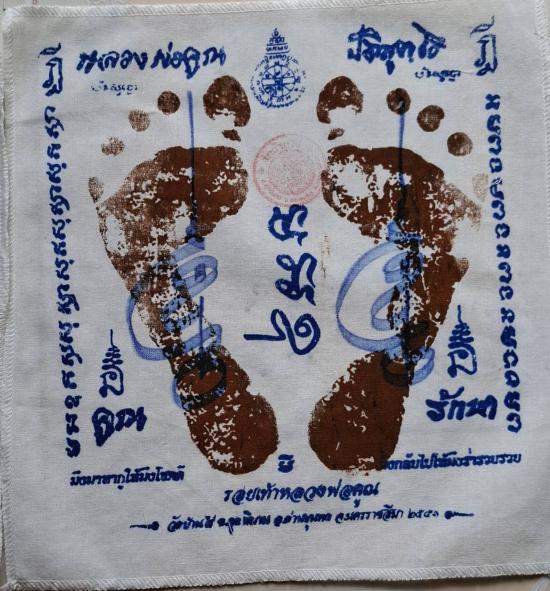 ผ้ายันต์ รอยเท้า ( พร้อมรอยจารหลวงพ่อทอง วัดบ้านไร่ เมตาจารหมึกให้ครับ )