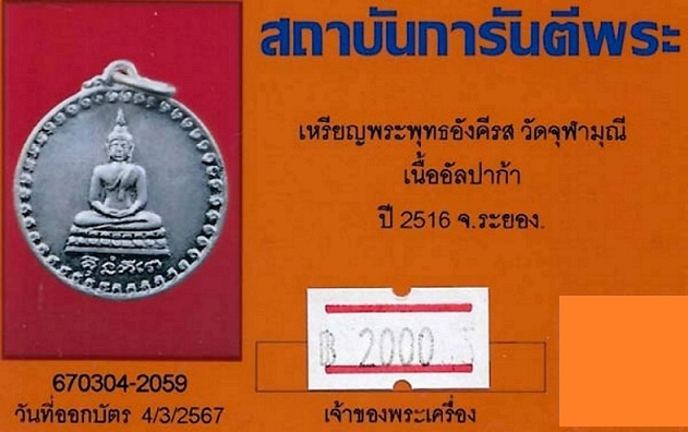 พระพุทธอังคีรส ปี 2516 ระยอง ออกวัดจุฬามุณี เนื้ออัลปาก้า หลวงปู่ทิม วัดละหารไร่ ปลุกเสก มาพร้อมบัตรรับรองครับ |