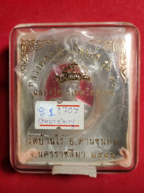 เหรียญหลวงพ่อคูณ ปริสุทโธ รุ่น ฉลองวิหารเทพ ออกวัดบ้านไร่ ปี 56 เนื้อ เงินลงยาสีชมพู หมายเลข 1707 เลี่ยมพร้อมใช้ เคาะเดียวแดง