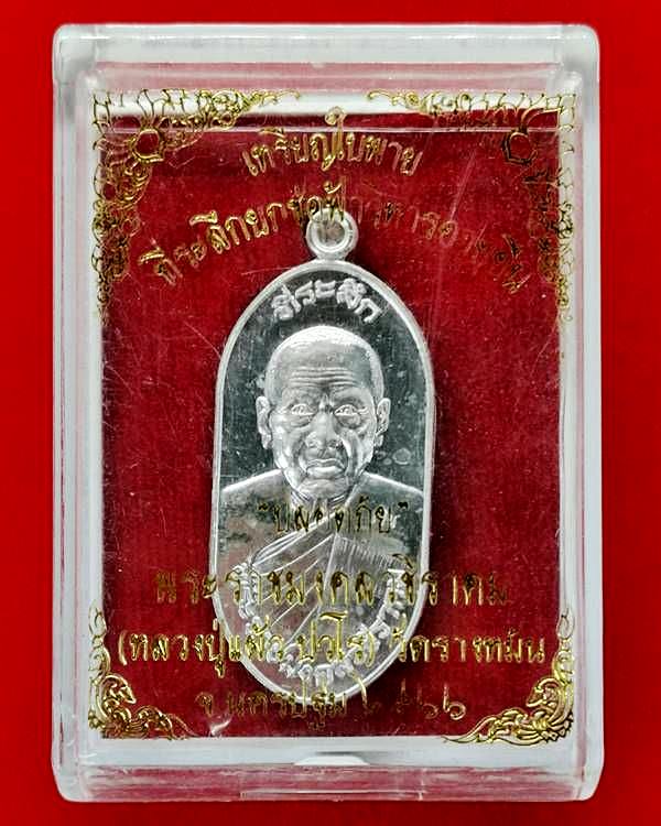เหรียญใบพาย เนื้อเงิน หลวงปู่แผ้ว ปวโร วัดรางหมัน จ.นครปฐม มีกล่อง