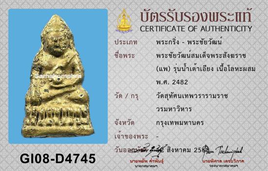 พระชัยวัฒน์สมเด็จพระสังฆราช(แพ) วัดสุทัศน์ รุ่นน้ำเต้าเอียง ปี 2482 กทม.