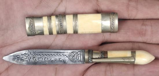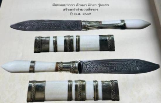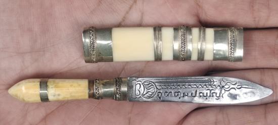 มีดหมอรุ่นเเรก หลวงพ่อชำนาญ วัดบางกุฎีทอง ปี2549 ด้ามงา ฝักงา รับประกันพระเเท้ตลอดชีพ |