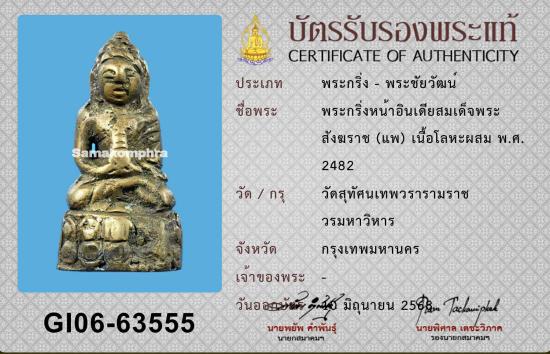 ++ บัตรรับรองสมาคมผู้นิยมพระเครื่องพระบูชาไทย ++