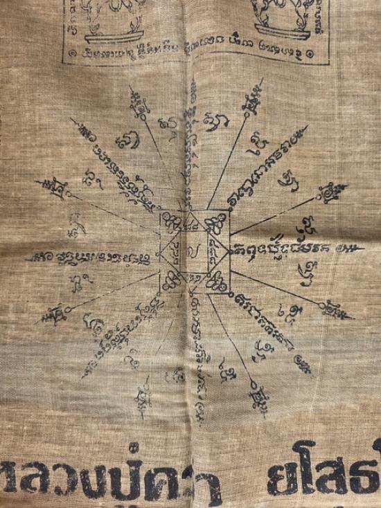 ผ้ายันต์พัดโบก มหาลาภ ยันต์กันฟ้าลง ฟ้าผ่า หลวงปู่คร่ำ วัดวังหว้า(ผืนใหญ่ )สภาพสวย หายากครับ....